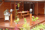 Le centre est composé d’un local technique pour le stockage et la distribution du matériel et d’une maison de style « paumotu » où l’on retrouve le centre lui-même, un local vidéo dédié et un club house pour un débriefing des plongées autour d’une collation… Le tout est ceinturé d’un grand Deck en bois (450m2) et terminé par un ponton qui permet aux plongeurs d’embarquer directement sur les bateaux.